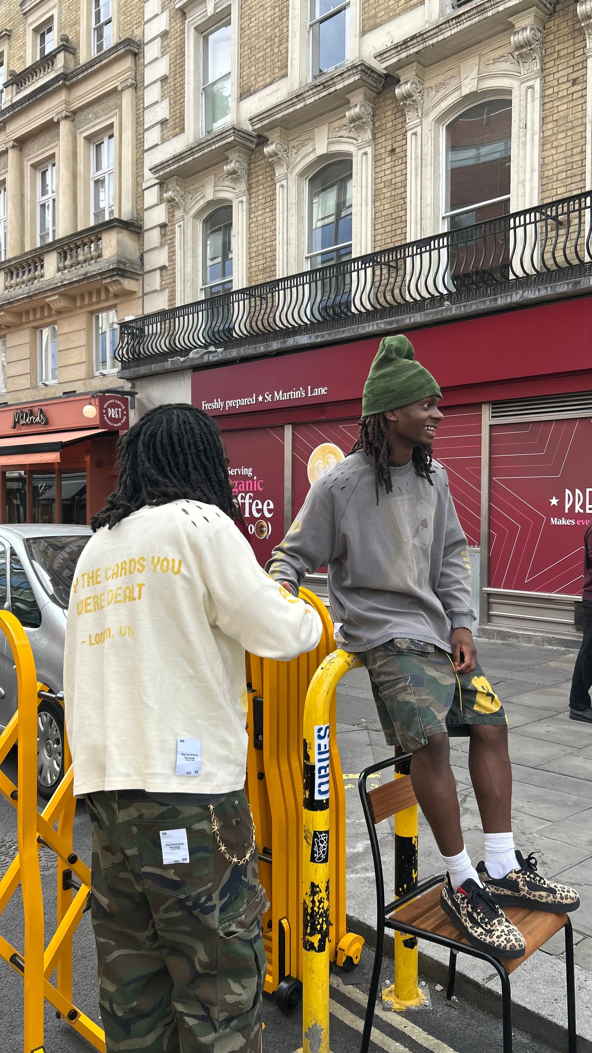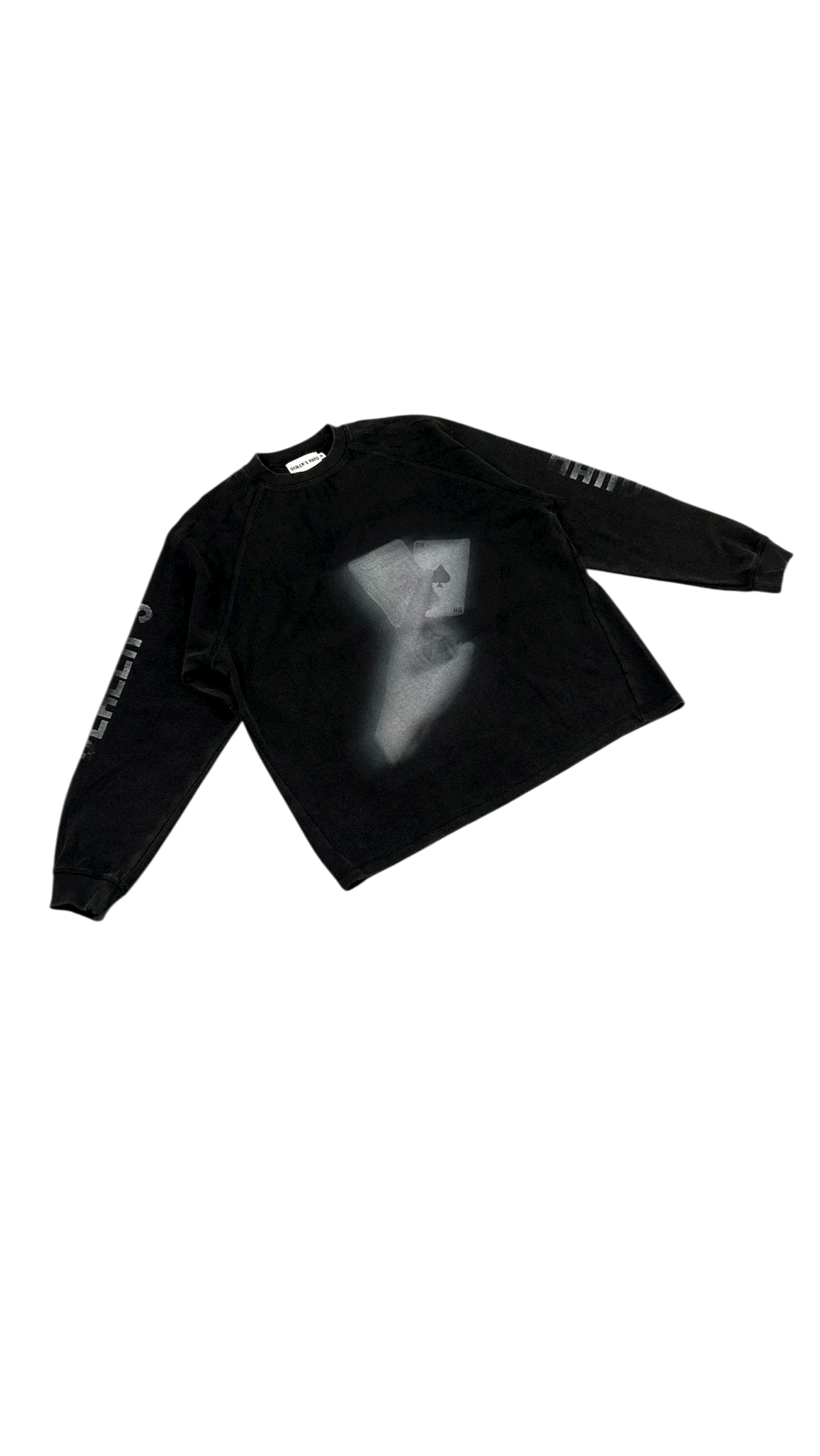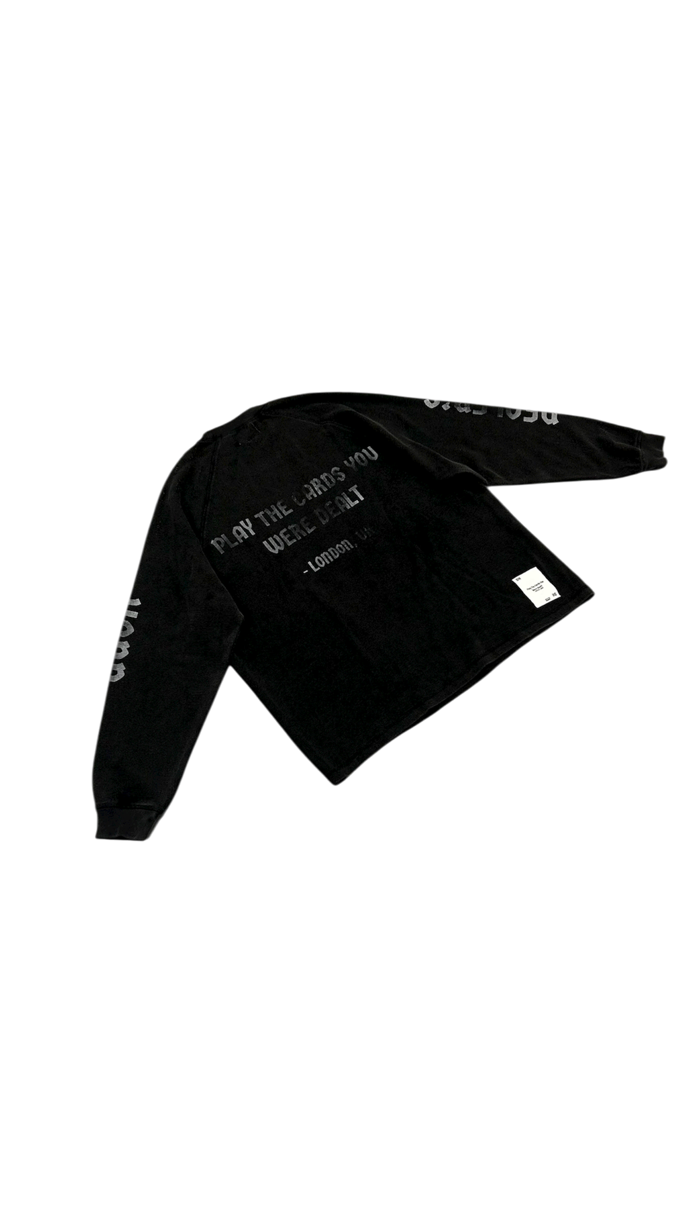 Thermal waffle long sleeve with distressing around the collar and shoulder; with DH Tag on the back